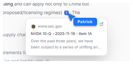 Ask questions and get direct answers pulled from official filings. Get citation to the exact document it came from.